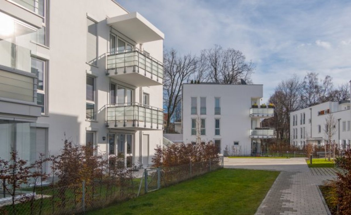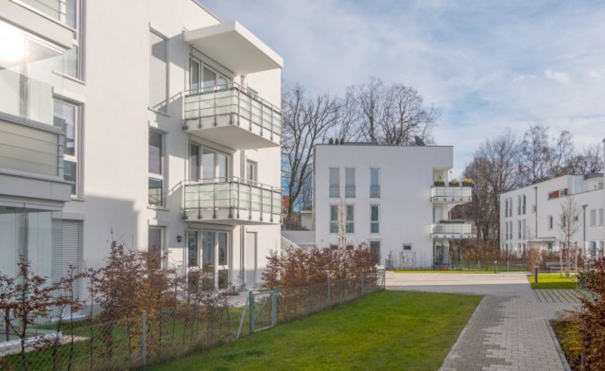26 Eigentumswohnungen in einem L-förmigen Neubau mit zwei Eingängen. 1- bis 4-Zimmerwohnungen mit Tiefgarage, in Laufnähe des Englischen Gartens und der Isarauen. Teil-GU, Rohbau, Innen- und Außenputz, Estrich, TG-Beschichtung, Fassade, Fließen, Parkett, Trockenbau, Malerarbeiten.