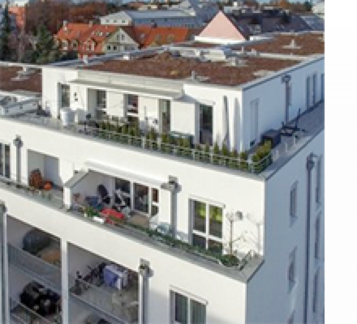 174 Wohnungen, 1- bis 3-Zimmer-Wohnungenmit Balkonen, Terrassen und Dachterrassen.